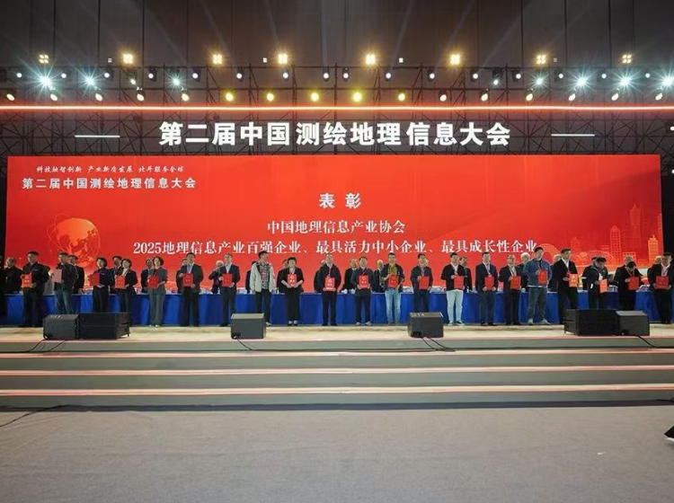 11月5日至7日,由自然资源部指导,中国地理信息产业协会、中国测绘学会和中国卫星导航定位协会主办的第二届中国测绘地理信息大会在浙江德清召开。大会围绕“科技融智创新 产业新质发展 北斗服务全球”主题,交流思想、展示成果、共谋发展。大会现场发布了2025地理信息产业百强企业、最具活力中小企业和最具成长性企业榜单,公司继2024年之后,再次荣获“2025地理信息产业最具活力中型企业”、“2025地理信息最具成长性企业”荣誉称号。