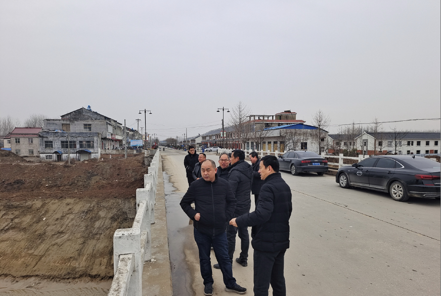 2023年2月13日,梁化成董事长率领张应奎总经理等同志,陪同灌南县水利局邱军局长和马玉国副局长等参建单位同志察看柴南河施工现场。